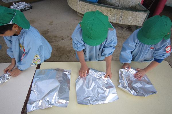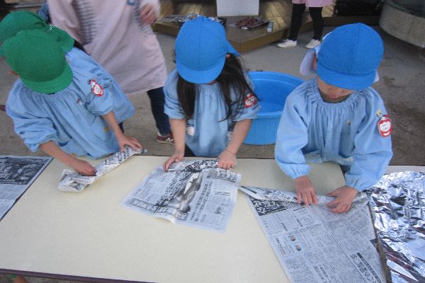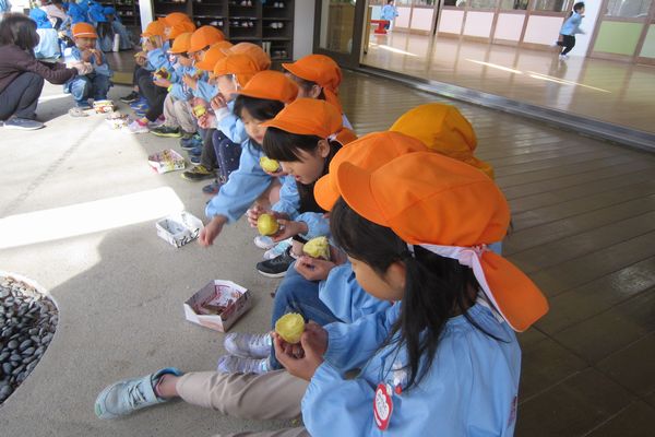 お芋ほりで掘ったお芋を焼いて、焼き芋パーティーをしました!