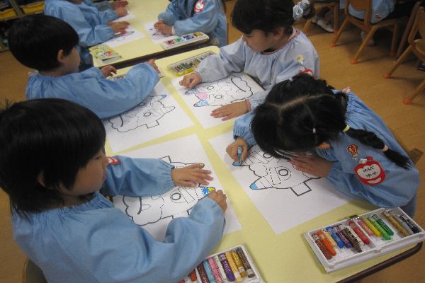 鬼のお面を作りました! いろんな色の鬼ができたね☆