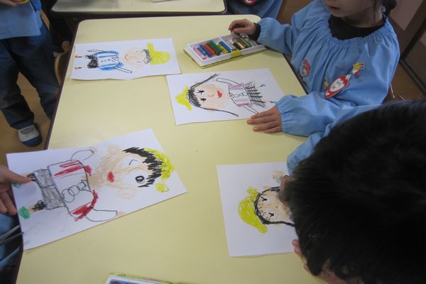 月刊絵本を読みました!楽しかったね★ レストランのマークを考えて描くページは、おうちでお子さんと一緒にやってみてください! もうすぐ一年生ということで、一年生になった自分を描きました!
