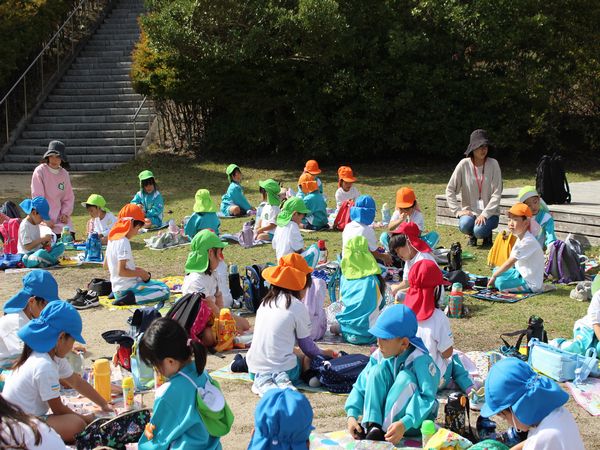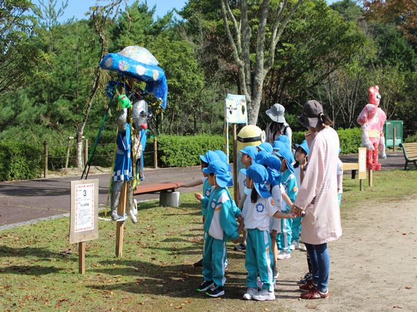 他の園さんがつくっているかかしをみて「すごいね」と子どもたちで盛り上がっていました!