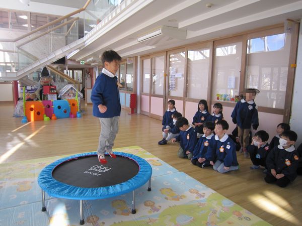 かかしまつり入賞の賞金でトランポリンを購入しました