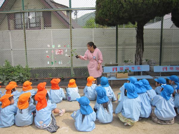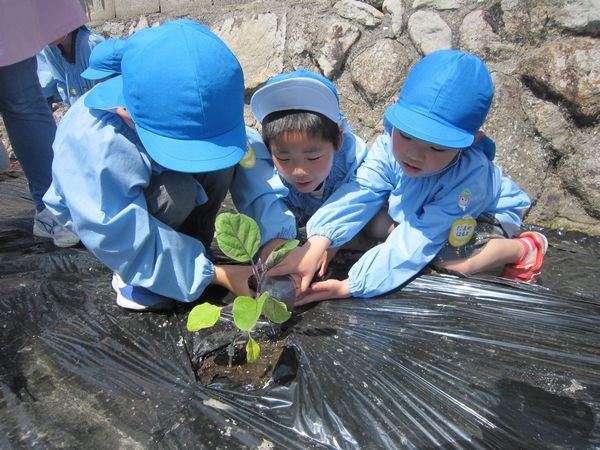 下の園庭にきゅうりを植えました!