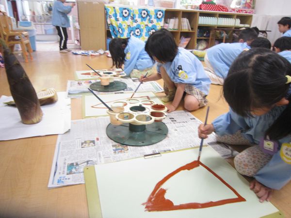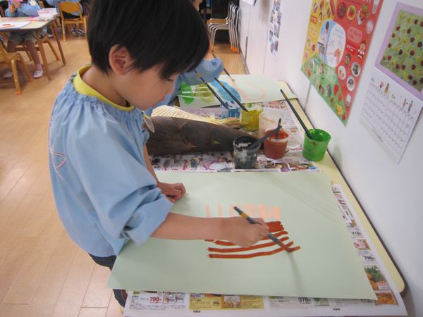 そのあとは、近くでたけのこを見ながら絵の具で表現してみました♪