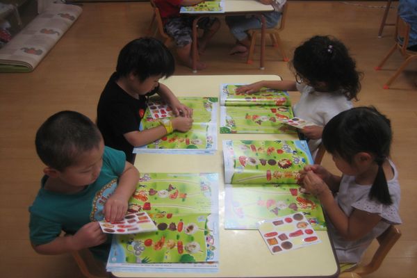 シールを使って数を数えたり、合わせたり、楽しみながら数にも触れていきます。
