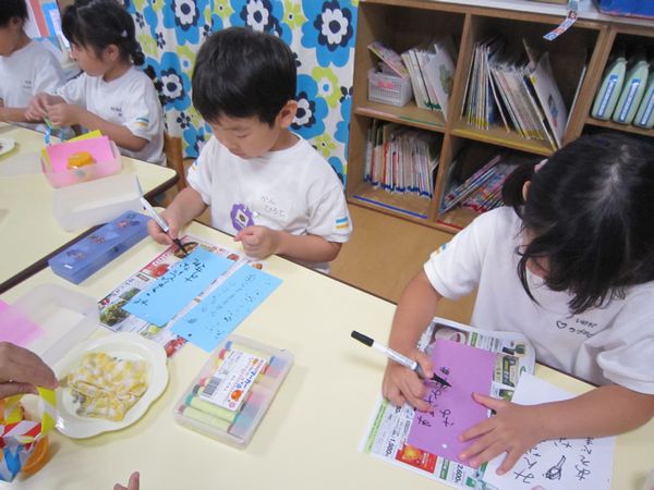 幼稚園の笹の葉に飾る七夕製作をしました!