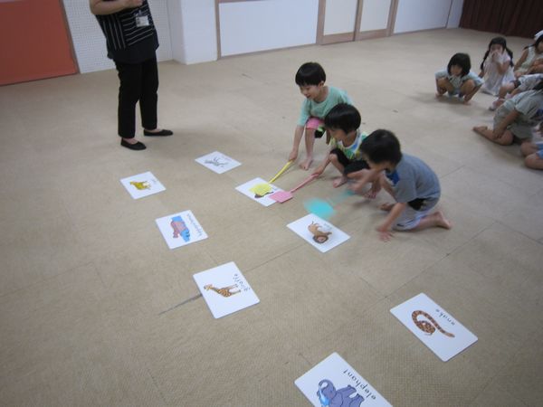 英語遊びでは動物の仲間を学び、タッチゲームをしました☆