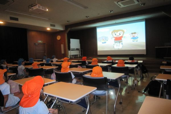 防災アニメを見て地震や火事、災害の怖さや日頃の備え、消防署の仕事等について学びました!