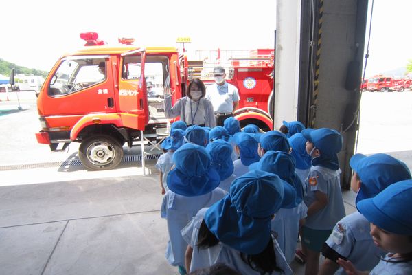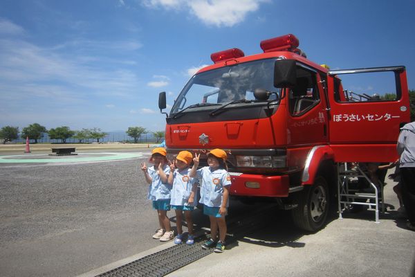 3人ずつ消防車に乗車し、実際に車を一周ずつ走らせてもらいました!