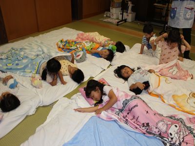 ドキドキしながらみんなで布団を準備しました!