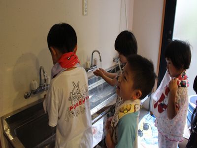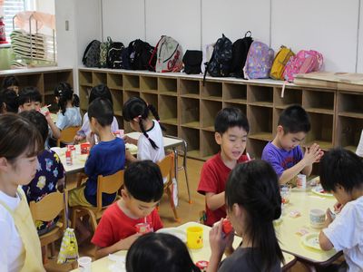 幼稚園に帰り、お楽しみの朝ごはん!
