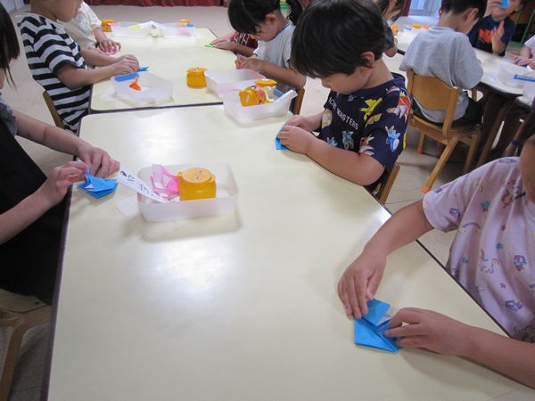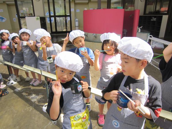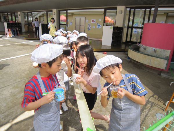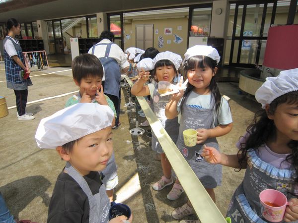 そうめん、トマト、パイナップルが流れてきて子どもたちも喜んで食べていました♫
