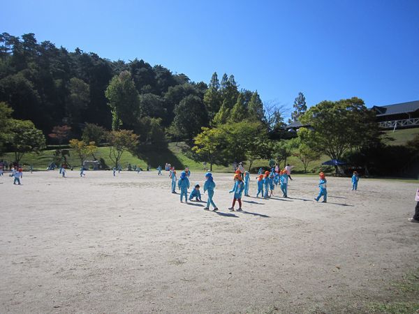 広い広場で鬼ごっこをしたり、どんぐりを集めたりして遊びました!