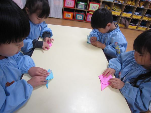 「世界平和を願っているんだよ」とお話をし、折り鶴を折ってみました!