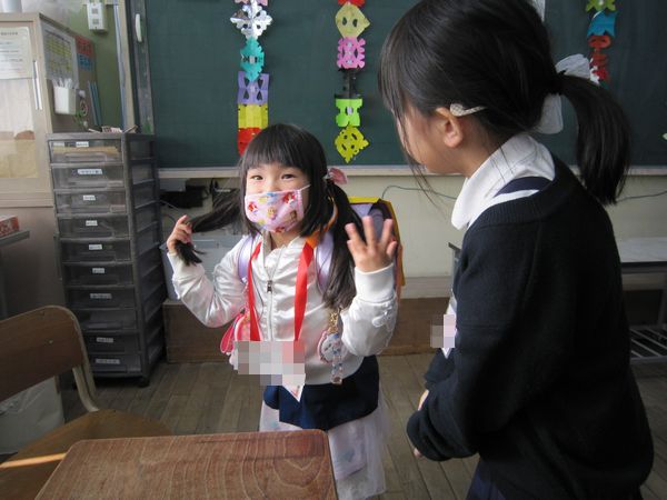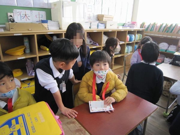 最初に1年生の教室に入らせてもらい、ペアのお友達と自己紹介をしました☆