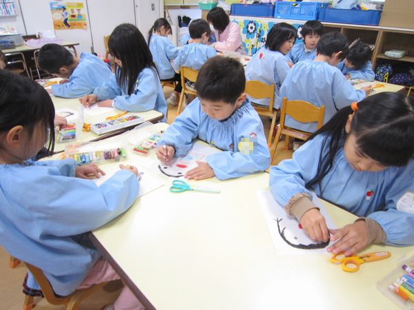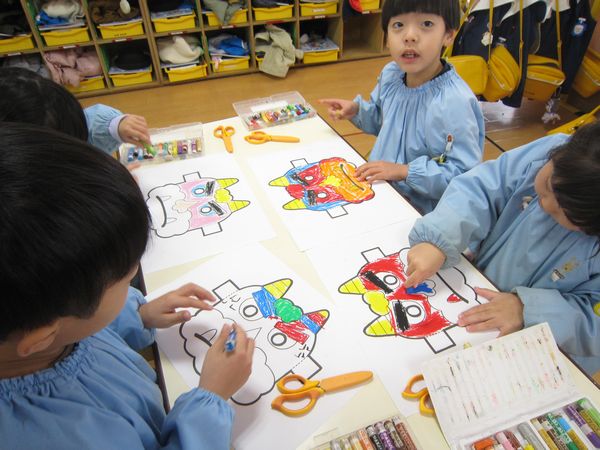 2月3日の節分豆まきに向けて、鬼面を作りました!