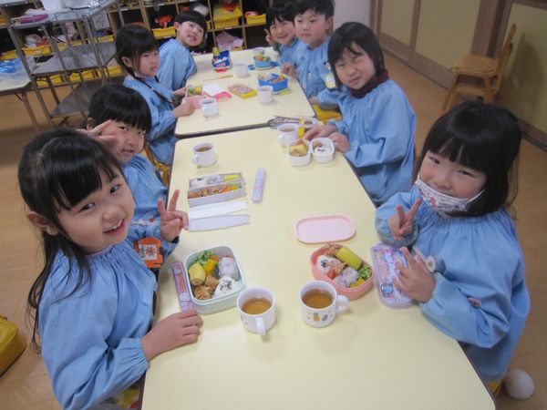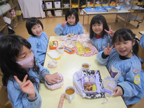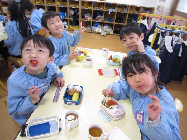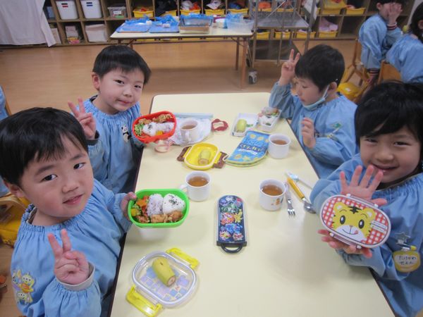 自分たちでお弁当箱に詰めていただきました☆自分で詰めたお弁当、嬉しそうに食べていました♡