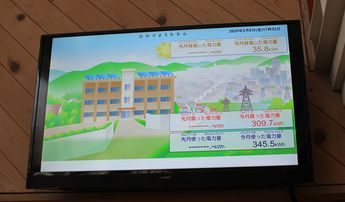 広島県の補助金をいただいて、太陽光発電が始まりました。事務所入り口側壁面、上部にモニターがあります。