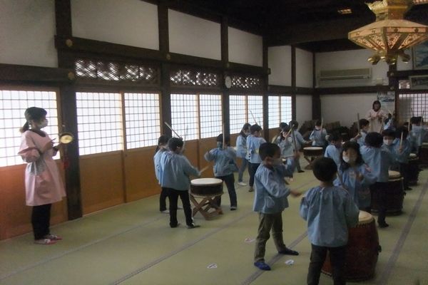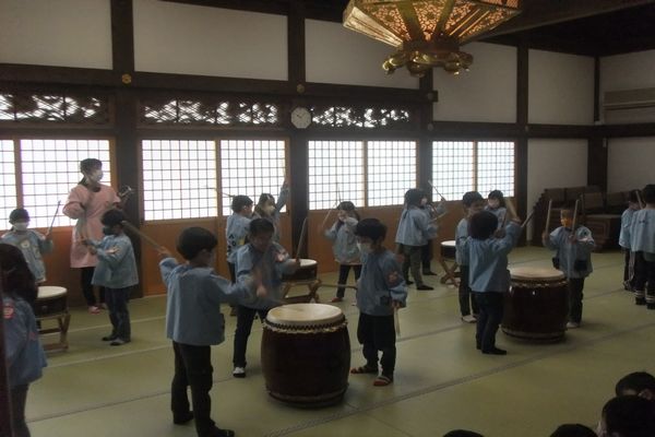 今日はお寺に行き、和太鼓をしました。