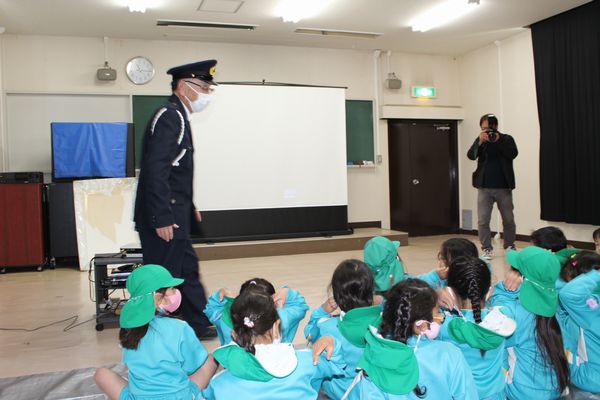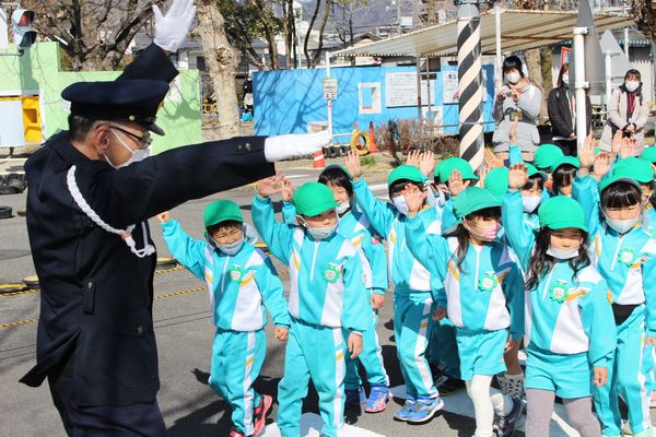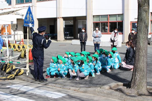 小学校に歩いて行くために、道路の安全な渡り方などを教えてもらいました。