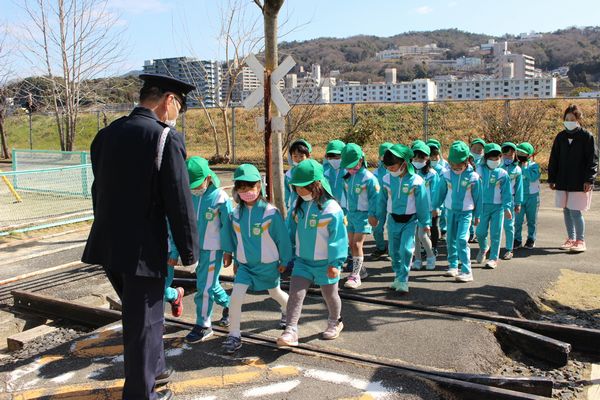 踏切の渡り方では、左右の確認だけでなく、またいで渡ること、音を聞くことを教えてもらいました。