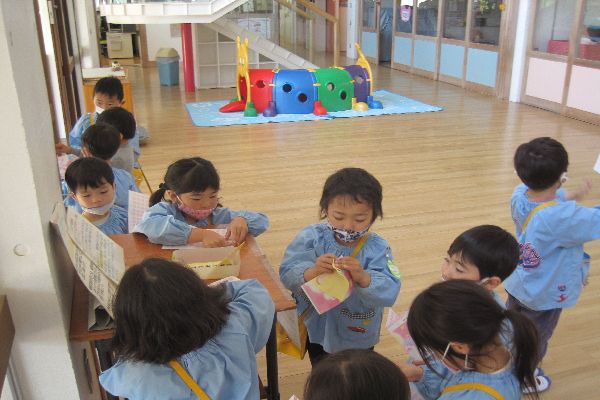 幼稚園に来たら、いつも見守ってくださっている、みほとけさまに朝の挨拶をしてからクラスに入ります。