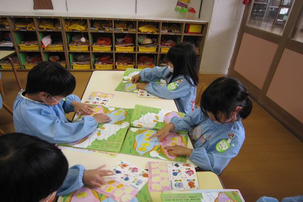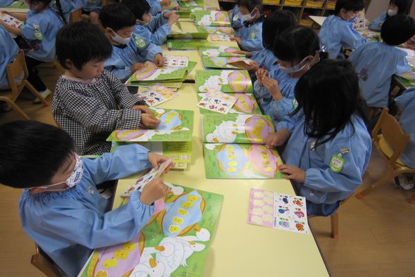 ひよこの数を数えてシールを貼って遊びました。