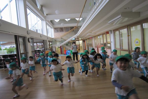 体操教室では、最初はマットの上で動物の歩き方を真似しました!