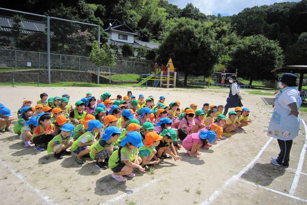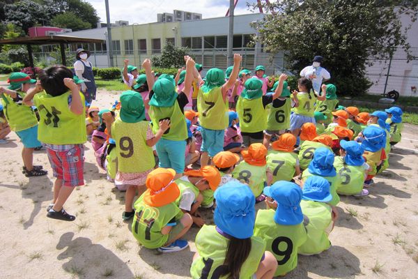 今日は幼稚園のすぐ上にある第4公園でリレー,女の子の踊りを練習しました!