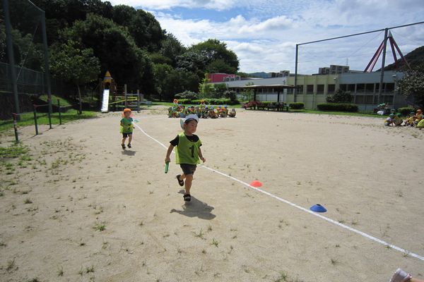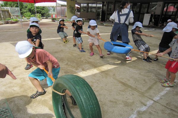 幼稚園に戻ってから、男の子のタイヤ取りの練習もしました!