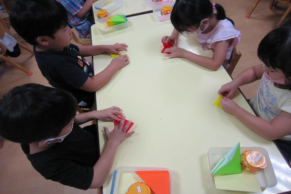 今日は折り紙でロケットを作りました!