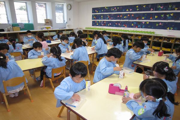 今日は万華鏡を組み立て、完成しました! 少し難しい所もあったけど、最後まで頑張っていました★ くるくる回しながらのぞいてみるととってもきれいで、子ども達も 「わ~、きれいだね」と嬉しそうでした♪