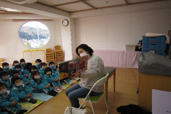 「おちばのしたをのぞいたら」「おしくらまんじゅう」「くまのビーディーくん」「ナガナガくん」を読んでくださいました1