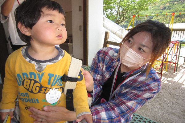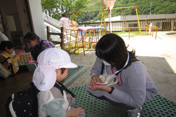 日曜日は母の日です!いちご組さんも、おかあさんにプレゼントを作りました。お迎えにきてくれたおかあさんに「はい!どうぞ!」と、渡せました。よかったね!