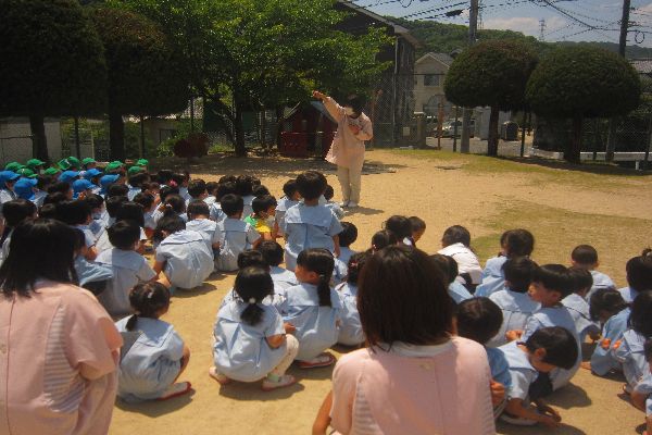 今日は火事が起きた時を想定して、下の園庭に避難しました。