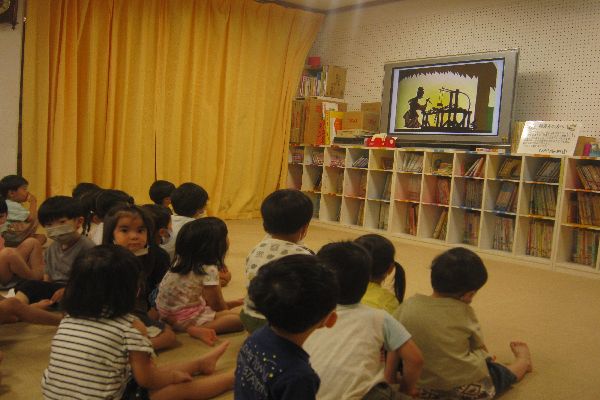 7月7日の七夕の日、幼稚園でも七夕まつりをする予定です。今日は、みんなで七夕のお話をみました。おりひめ様、ひこぼし様がでてくると、みんな「しってるよー」と教えてくれました。少しずつ、七夕の飾りも製作していく予定です♪