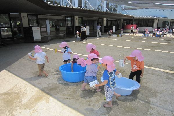 今日はみんなで園庭で水遊びをしました!
