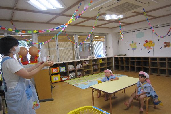 お帰りには、「おべんとうバス」のペープサートを見ました。楽しそうに見ていました。