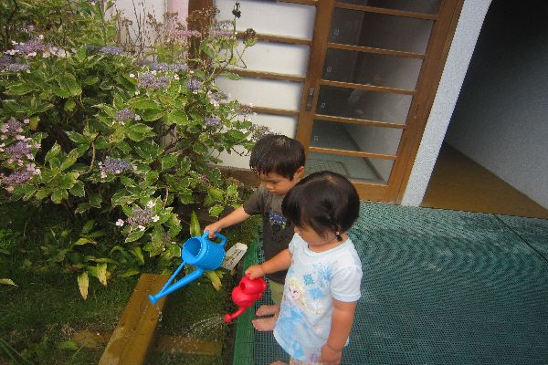 水遊びの後は、お花にお水をあげますよ♪おおきくなあれ!