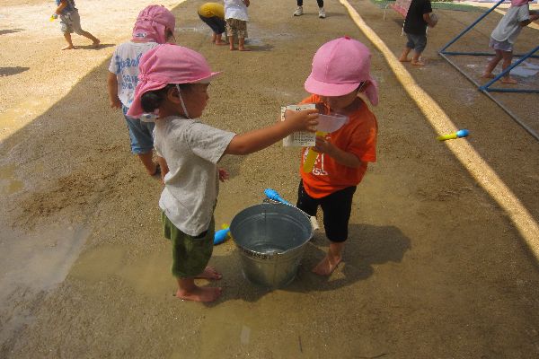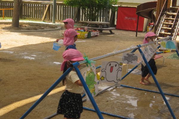 みずでっぽうや、牛乳パックコップでたのしくあそびましたよ!