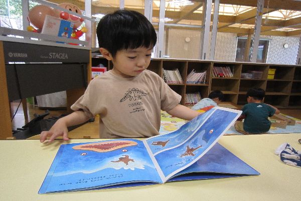 初めて水鉄砲で遊びました。使い方をお話すると、上手に使えて、遠くまで水をとばしたり、花に水をあげたりして楽しんでいました。