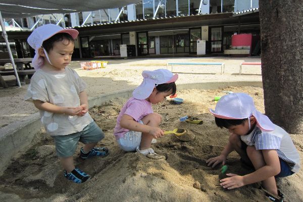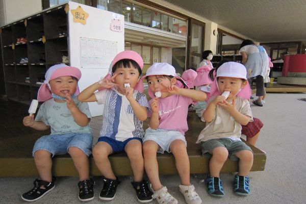 長かった夏休みが終わり、今日から夏期保育が始まりました。元気に登園してくれて、お友達とも楽しく遊びました。