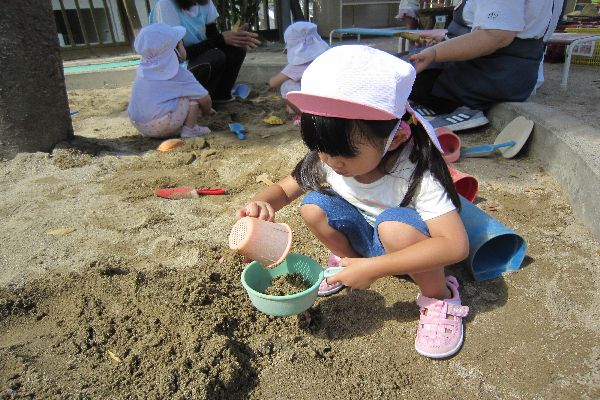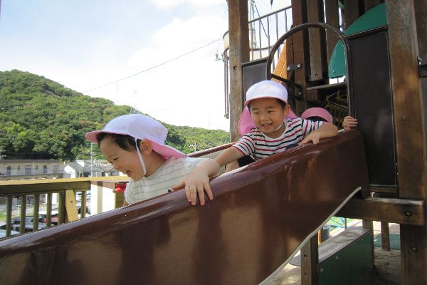 今日はお天気が良く、お外でたくさん遊びました。砂場でごちそうを作ったり、お友達と一緒に滑り台をすべったり、元気いっぱい遊びました。