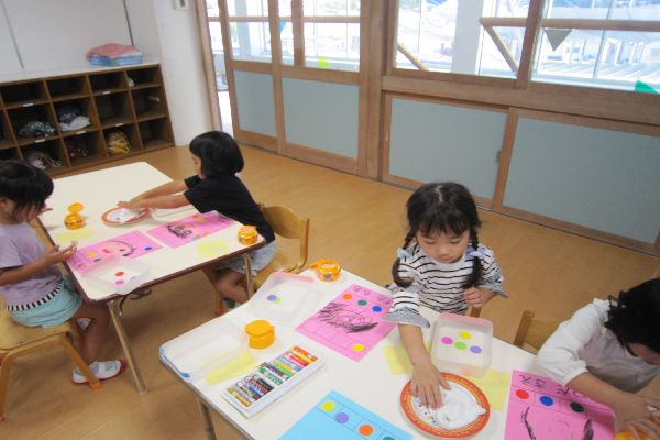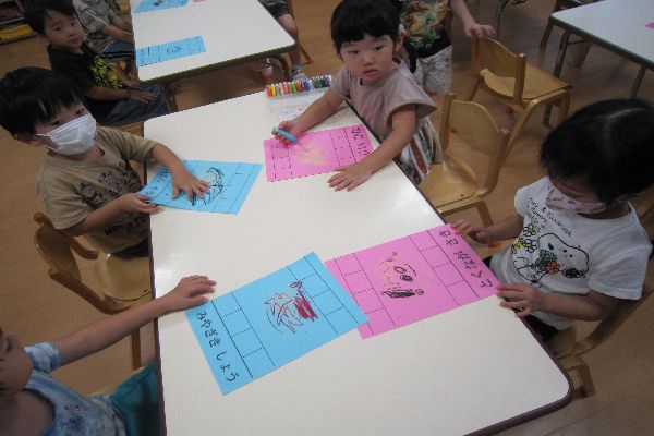 今日はみんなでお当番表を作りました!自分の顔を描いて、のりでカラフルに飾りつけもしました。