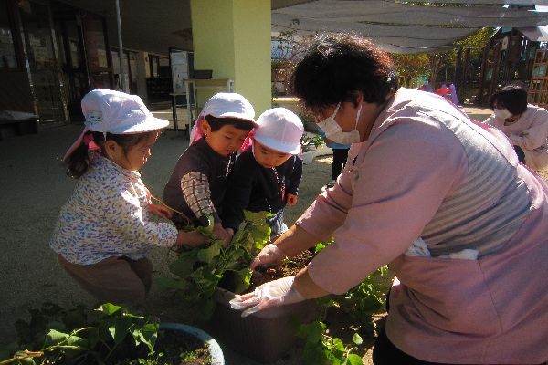 自分の袋にお芋を入れて持って帰りまーす♪はやくたべたいなあ・・
