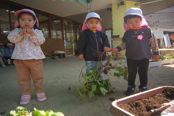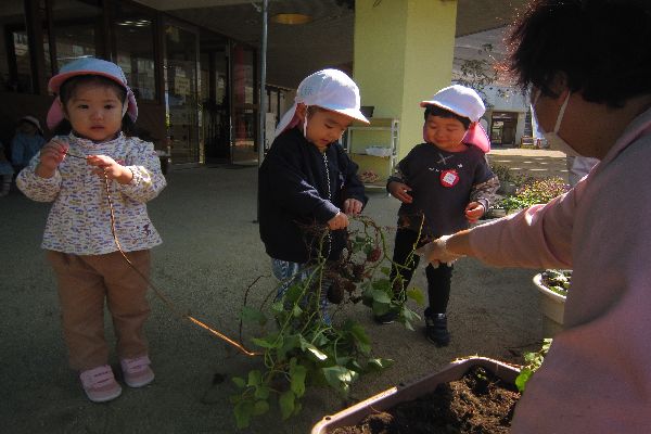 いちご組さん、今日は楽しみにしていたおいもほり!たくさんほるぞー!