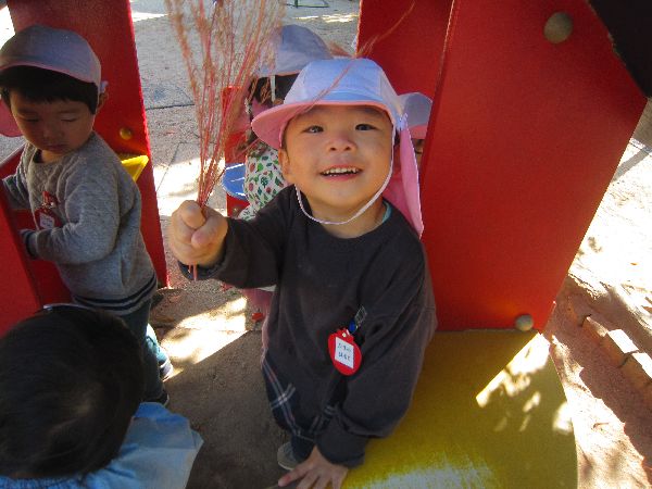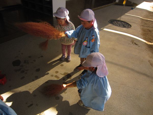 ほうき草をいただいたので、みんなで、そうじごっこをしました。「おかあさんみたいでしょ!」と、喜んでいます!