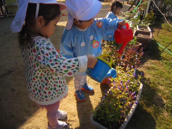 お天気がいいので、花に水をあげてくれるお友達もいます。