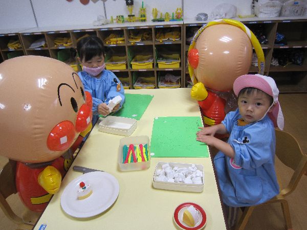 お部屋でアンパンマンと粘土を楽しんだお友達もいました。
