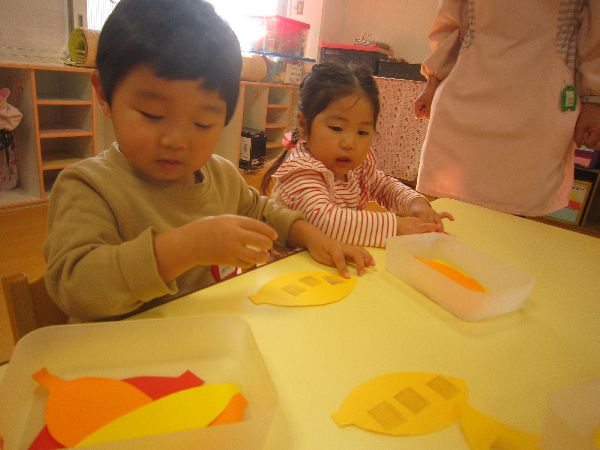 2022/11/09 いちご組さん、スタンプ遊びをしたよ!