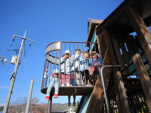 滑り台の一番高いところにも登れるようになりました。上から「おーい!」と元気な声で呼んでいます。